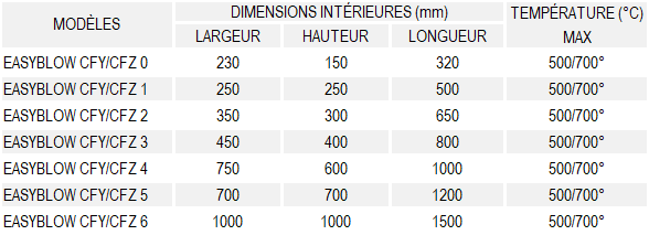 Fours à chambre horizontale à convection forcée destinés aux traitements thermiques de précision à basse température, jusqu’à 500 ou 700°C. De puissants ensembles de brassage associés à des déflecteurs judicieusement placés imposent un flux d’air chaud homogène au contact des pièces traitées. Les fours sont équipés de portes manuelles ou pneumatiques pour un chargement en face avant. L’isolation en fibre minérale leur confère une grande réactivité.