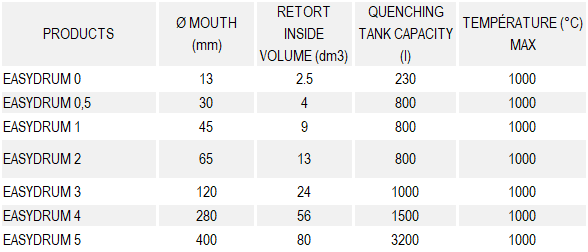 Based on the principle of a heating drum, the EASYDRUM range is perfectly suited to the thermal and thermochemical treatment of small, medium and large series parts. The regular stirring of the parts induced by the rotation of the refractory stainless steel retort offers uniform and homogeneous treatment conditions in a controlled atmosphere. The unloading takes place directly in the quenching tank by tilting the furnace.